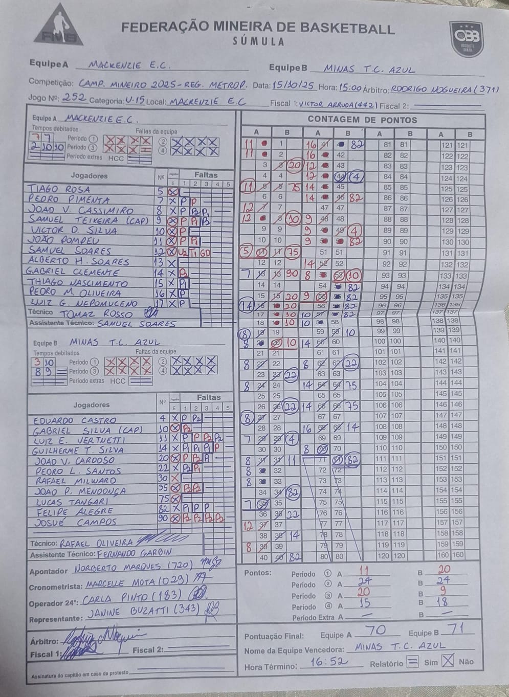 | Minas Tênis Clube Azul | 71 |